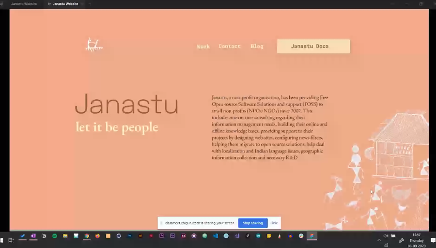 Yatharth: I was thinking for Janastu website we can go with some local arts illustration. if we know someone in our networks like some rural artists we can involve them. I will just share what i was thinking and its very basic right now.